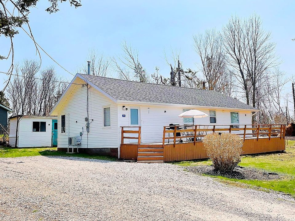 Updated Rancher located in desirable, quiet, family-friendly Rosebank community of Stratford, situated at the end of short lane. This sunny home features 2 bedrooms and a full bath with tub. Main living area has open floor plan: kitchen flows into the dining room and living room, and features door to rear patio and yard. Separate laundry room, easy-care flooring throughout. Large front deck with distant waterview where you can watch the cruise ships sail into Charlottetown harbour. Also has a small rear patio perfect for your barbecue. Oil-fired forced hot air heat, plus heat pump in main living area for heating and air conditioning. Off-street parking for multiple vehicles, bonus storage shed. Please note this home has no basement and is on piers. Located near Stratford waterfront, close to numerous parks, recreation facilities, golf course, walking trails, just minutes to Stratford amenities (shopping, pharmacy, groceries, dining), and just a quick drive to the heart of downtown Charlottetown and all amenities.