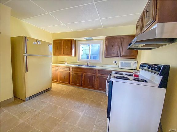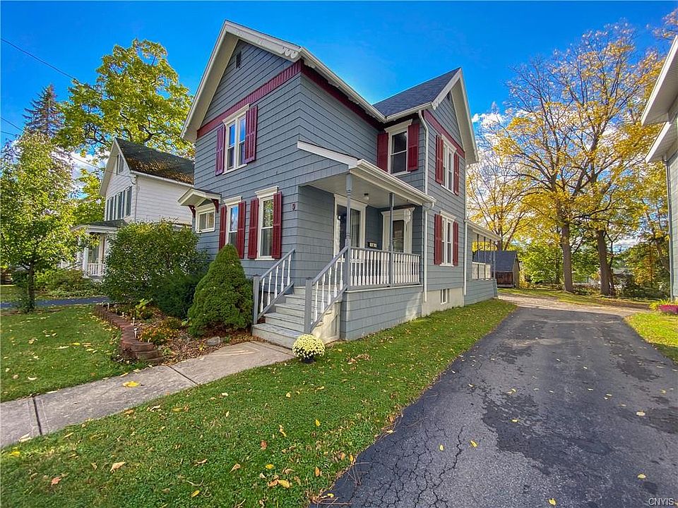 Welcome to 9 Chestnut Street located off East Genesee St. This 3 bedroom, 1.5 bath home is laid out quite nicely and has central air. There is a good size back yard, pole barn style structure that could act as a garage, and two porches. Walking off of the back porch into the home, you enter a nice mudroom and laundry room area. This area is right off the large and open eat-in kitchen with a walk-in pantry. Off of the front porch you enter into a main living and dining room area. This space is great for entertaining and extra living space. Walking towards the front of the home there is a more formal living area with fireplace. The formal living room leads you to the first floor half bath and the stunning staircase bringing you to the second story. The second story includes 3 bedrooms and a full bathroom with nice size walk-in closets, large linen closet and good size bathroom.