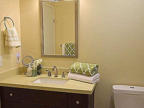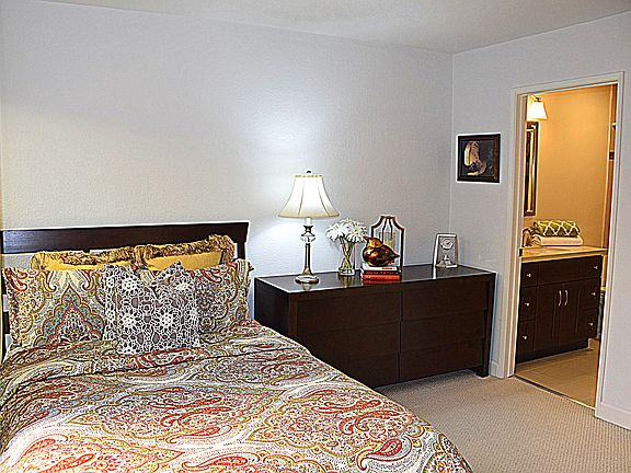 Tucked away at the back of a quiet cul-de-sac, this sunny end unit features a classically updated granite kitchen and serene master suite including 2 closets, a walk-in shower with separate soaking tub and double sinks. Both bathrooms are newly remodeled, sleek and modern. Interior atrium offer options of outside space. Sunny back deck has sweeping treetop and Bay Views. Attached 2 car garage makes this the perfect home. Complex includes spa, pool, tennis court, club house & children's play area. Top rated schools!