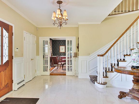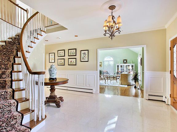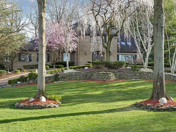 Spectacular All Brick, Custom Center Hall Colonial on a very desirable cul-de-sac. This Majestic home sits high atop professionally landscaped property w/an oversized circular driveway leading to the 3 car garage. Marble Foyer w/Curved Staircase; Oversized Dining Rm w/electric Fireplace, Hdwd Flooring & Decorative Molding; Bright Living Rm w/Hdwd Flooring shares a Double Sided Gas Fireplace w/the Family Rm that has built-in wall shelving & Hdwd Flooring. Beautiful Sunrm overlooking picturesque backyard. Great Rm, Full Bath & an Office. 4 Large Bedrooms upstairs. Skylights, Recessed Lighting & Lots of Closet Space throughout. New appliances in Kitchen. Finished basement w/full bath & kitchenette. Backyard Oasis w/in-ground pool! 100% WOW in every direction!