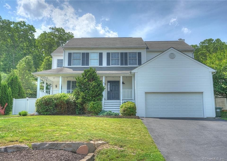 Large Colonial with covered porch, 4 bedrooms, 2 full and 1 half baths and 2,303 sf in great subdivision close to Deerfield Ridge! The light filled eat-in kitchen features attractive white cabinetry, center island with a small breakfast bar, a dining area and door access that opens out to the deck and patio complete with a fenced backyard. Off the kitchen is a half bath, the formal dining room and the living room with several Colonial style windows and a wood burning fireplace. On the upper level are 4 good size bedrooms, a full bath, convenient laundry room and a spacious private full bath with a jetted tub and walk-in closet in the Primary bedroom. Home offers central air, a full basement and an attached 2 car garage. This is a wonderful neighborhood to take morning or evening walks! Close to downtown Mystic.