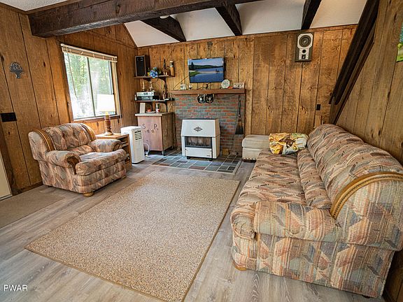 Escape to your private mountain retreat with this chalet, nestled on a serene half-acre lot. This furnished 2-bedroom, 1-bath home features a spacious loft and is perfectly positioned beside a babbling stream. The authentic wood paneling reminds you that you are indeed in a mountain lake house. You will love the new kitchen with quartz counters and large breakfast bar. All new flooring graces the main level and the crawl space is tall enough for most people to stand. Enjoy all the community has to offer with easy access to North Side amenities including a recreational area with a pool, playground, and convenient mailbox facilities. Just a short distance away, you'll find a premier golf course, full-service restaurant, and pub, as well as a fitness center and indoor tennis courts. Your dream getaway awaits!