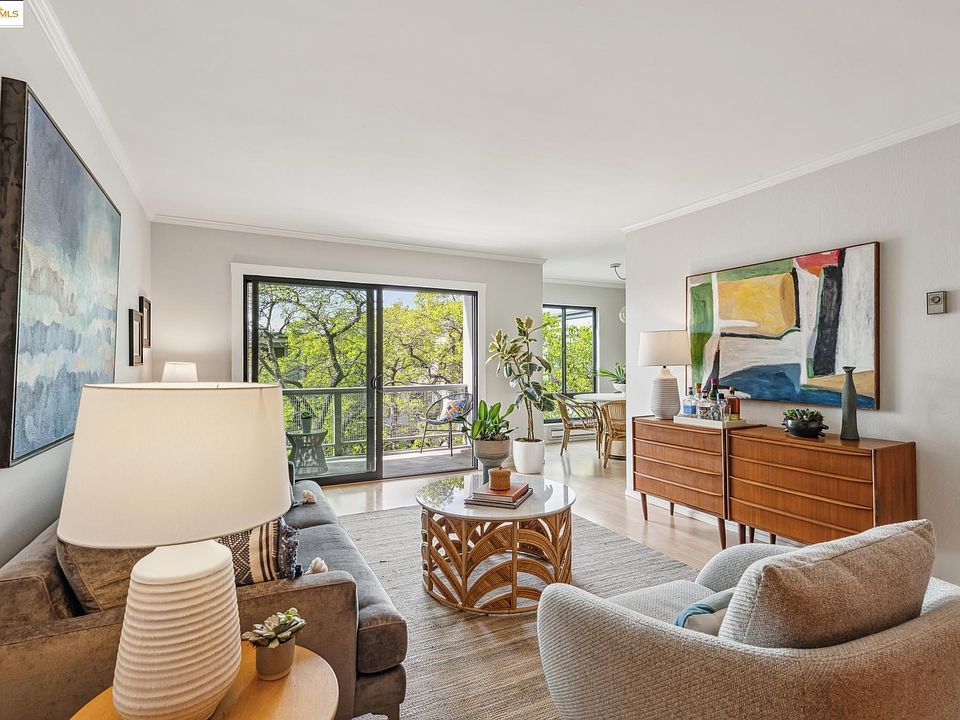 Resort living at Watergate! TOP FLOOR one bedroom condo with light and bright courtyard views. A spacious living room opens to an adjacent balcony bringing the outdoors in; the dining area flows into a renovated kitchen featuring a Bertazzoni specialty oven and SCHOTT CERAN induction cooktop. Elegant finishes include updated lighting, smoothed ceilings, crown molding and trim; freshly painted in designer colors. Premium dual paned windows installed for energy efficiency and comfort; three large closets provide ample storage space! Enjoy an extensive list of recreational amenities, including 4 swimming pools, 4 tennis courts, 2 community center, a full gym, indoor and outdoor hot tubs, a racquetball court, men's and women's saunas, steam rooms, showers, changing rooms, and more. In a fantastic central Bay Area location just minutes to downtown San Francisco, Oakland, and Berkeley. At your doorstep, find access to a boardwalk at the water's edge, paths leading to the Emeryville Marina Park and miles of bayside trails along the SF Bay Trail. Convenient onsite EV charging and public transportation options including a free shuttle to BART and the AC Transbay bus. Near freeway on-ramps, AMTRAK train station, Bay Street shopping, and local restaurants. Open Sun March 30th, 2-4pm.