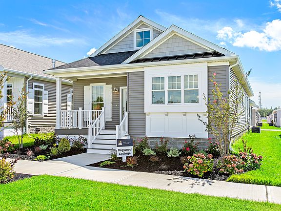 Brand New Spec Home ready for immediate occupancy at Cottages at Compass Point, an active adult 55+ community located in Barnegat, NJ - 2 bedroom, 2 full bath with den. This Dogwood cottage features a cozy front porch, spacious one-car garage, additional parking pad, concrete patio with privacy fence as well as multiple upgrades inside this home. Being one of our largest cottages, it won't feel like downsizing when you step into the gorgeous gourmet kitchen with an abundance of 42" Glacier white cabinets with 3 piece crown molding, Anew grey center island, wooden range hood, nickel hardware and Tofino HanStone quartz countertops. You will be drawn to the scenic view outside the oversized picture window above the sink which has a large sill for your houseplants to thrive in the sunshine! The Whirlpool stainless steel appliance package includes a side-by-side refrigerator with in-the-door ice and water, gas, self-clean range, dishwasher and built-in microwave. There are also plenty of surprises within the cabinets such as pull out trays, hidden trash/recycling cans, pots and pans drawer, tilt out tray and a cutlery tray. Step into the formal living room to find a decorative tray ceiling and Rave linear fireplace which is ignited effortlessly by remote control. You'll discover a full-sized, front load washer/dryer in the utility room along with a hidden hamper, cabinet tall enough to hold an ironing board as well as plenty of storage for your laundry needs. 6' tall double