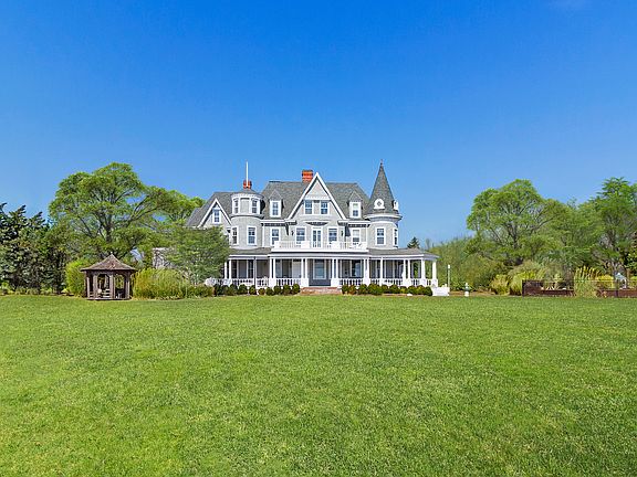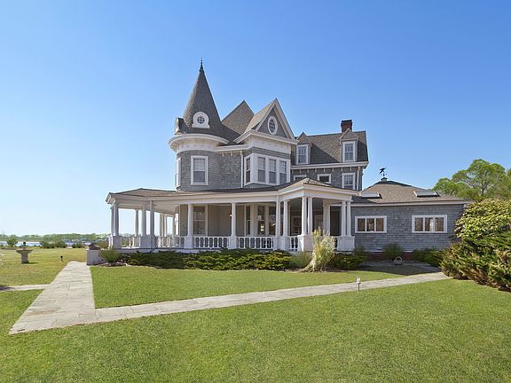 A property of this caliber and condition is rare indeed. Pristine, original, and beautifully positioned on 3+ acres of rolling waterfront, this majestic, three story, 9000 sqft Victorian, built in 1896 is nothing short of divine. Flanked by 383' of bulkheaded Bayfront, offering stunning panoramic views from all interior levels and the wrap around covered porch, it's notable that the view of this estate from Moriches Bay is equally as breathtaking. From the double arched entry doors, to the seven fireplaces and spiral staircase turret, this home is comprised of solid, untouched 19th century Queen Anne Mouldings, dramatic high ceilings, oversized doors, leaded and stained glass windows and original hardwood floors. This extraordinary estate also boasts a walk-up fourth level attic space, English country gardens, private balconies, a gazebo and a 40' pool with patio. A magical labyrinth of secret nooks and passageways, the possibilities for configuration, preservation and modification of this 8 bedroom home are absolutely endless. Bring in your favorite architect and designer, embark upon the most memorable project of their careers, and make this last-of-its-kind original South Shore estate entirely your own.