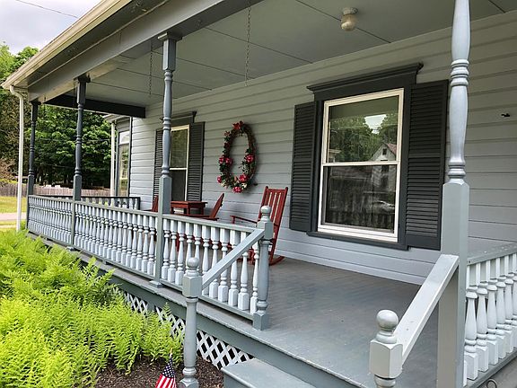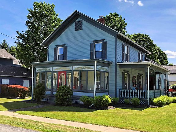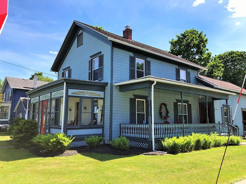 Beautiful village home with a rocking chair porch and lovely landscaped yard. Featuring 3 bedrooms with one room dedicated as a walk in closet and one bedroom on the first floor! Eat in kitchen with newer appliances and spacious formal dining room. Over sized living room leads to the enclosed sun porch! Plenty of room for an office in the back addition or the overly large central hall on the 2nd floor.Very dry basement plus an attached garage. Call today to start enjoying your iced tea on this porch!