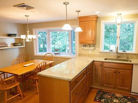 Spacious Dutch Gambrel style home located in desirable West Plymouth neighborhood! Main level features an eat in kitchen equipped with custom cabinetry and granite. In addition to formal dining and living areas, the fireplaced family room is complete with cathedral ceilings, shiplap and exposed collar ties. French doors lead to an expansive sunroom sharing similar aesthetics and access to the large, multi-tiered deck; a perfect spot for Summer entertaining. The generous master has extensive closet space and a remodeled 3/4 bath en suite. The home rests on large and private corner lot with professionally landscaped perennial beds. Two stall garage provides ample space and storage for those that or handy or for just getting out of the New England snow! The exterior has been freshly painted to accommodate all types of financing. Easy access to Route 3 and minutes to Plymouth's waterfront, shopping and beaches make this an ideal location for locals and commuters alike!