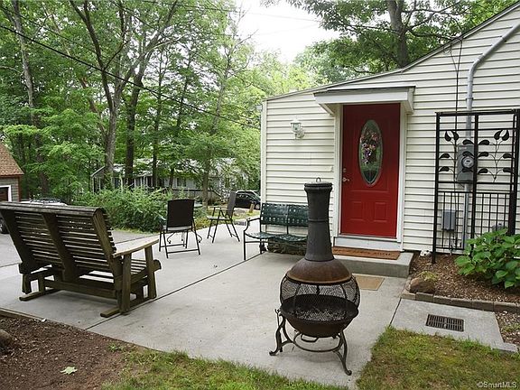 TRANQUIL SETTING - PRIVATE LIVING ON LAKE POCOTOPAUG Views of the Lake from your front patio or year-round sunroom / HOME OFFICE. Remodeled kitchen, bathroom with tastefully decorated interior. Spacious double lot with parking area to accommodate friends and family. Professionally constructed stone retaining walls, concrete patio with enormous sitting area to view lake, 2 rear stone block terraces - 1 with wrought iron framed canopy, perennial flower gardens, on a beautiful level grassed back yard. The plumbing and electrical systems (200 AMP circuit breaker have been replaced and upgraded in this cute ranch. Fully insulated including blown-in Fiberglass in the walls and batting in the attic. A laundry is in the rear entrance mud room. The 15 year old well supplies crystal clear water. The house is connected to the town's septic system. Hardwood floors throughout. Kitchen has granite and corian counters. Extra lighting above counters and in closets. Pull down stairs to attic with plywood floor. 10 year old asphalt shingle roof. The wood burning fireplace will provide a delightful ambiance on late fall or winter nights. Originally built in 1945 as a summer cottage, this house, has been totally remodeled. A UNIQUE FIND