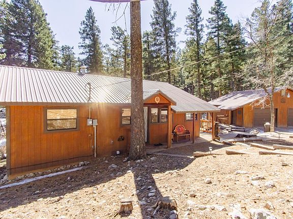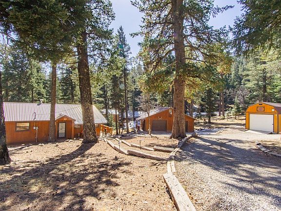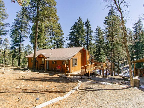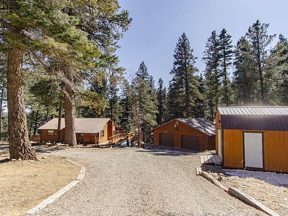 Endearing Mountain Cabin located in the Sacramento Mountains approximately 6 miles east of Cloudcroft. This well-built cabin has 2 bedrooms and 1 & 3/4 baths is located on 1.34 acres in a cul de sac. The inside ceilings and walls are tongue-in-groove knotty pine. The floors are treated pine as well. The eat-in kitchen was remodeled with granite counter tops, tile backsplash, kitchen sink. The refrigerator and stove top are electric and a little over a year old. There is a 20,000 BTU propane fireplace in the living room for the heat and the ambience of a fireplace without the work of chopping firewood! There is a third room that is located with an outside entrance from the staircase on the back deck. This room is approximately 7.5ft x 20ft. It can be used as a craft room, office, extra sleeping area, or a "cave". Furnace, water heaters, and 10KW backup propane generator is in a vented room under the house under the covered porch on the pack deck. The home has a 500 gallon propane tank. Supersized garage is 900 sq ft. It is insulated with a propane heater and a 125 gallon propane tank behind it. There is a small enclosed restroom with a toilet and industrial sink. 2 Gravel Pads were added so that a 12ft. x 25ft. lofted shed with electricity could be placed. Culvert and drainage was added for summer monsoons. Plenty of parking. There is a two sided deck with a covered porch for spending time in the cool NM weather and enjoying the wildlife!