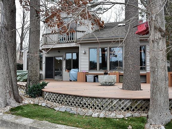 A custom built contemporary home on Hayden Pond designed to capture water views from both the first and second living levels. The seller gave thought to the open floor plan for comfortable lakefront living with an open concept. The first level has vaulted wooden ceilings with recessed lighting in the dining room, main living room, office , main bedroom suite, and entry way. Custom features include : pockets doors, first floor laundry ,cabinet packed kitchen with pantry, and second floor family room with a fantastic view of the Pond. The exterior grounds are very low maintenance and include a two level deck for outside entertaining. The 75' beach is level and ideal for launching your boat or relaxing in the sun. Several sheds offer storage for your waterfront toys. This property is a rare opportunity for year round waterfront living in a home with quality features, a two car garage, a sandy beach and dynamic views.
