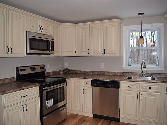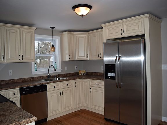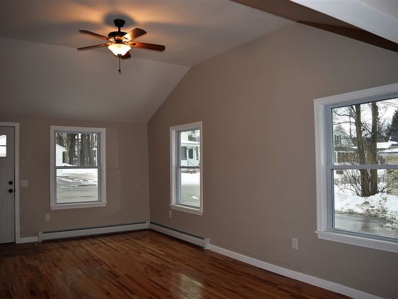 This quaint 3 bedroom, 2 bath home has undergone an extensive renovation and is a must see! All new inside & out, with fully updated utilities including: all new electrical, plumbing, heating system, new sheathing & 30 year architectural roof, windows, doors, insulation & vinyl siding, the list goes on. Stunning new toasted almond maple kitchen with upgrades that include crown moulding, dovetail & slow close drawers and doors, topped off with a full set of stainless steel appliances. Beautiful oak hardwood that carries from the eat-in kitchen all the way to the living room which features a vaulted ceiling & plenty of windows to let in the natural light. The master bedroom offers its own private 3/4 bath with tile. 2 additional bedrooms, another full bath with tile, first floor washer/dryer hookups. Outside a one car detached garage with new roof, newly built deck off the side and front stoop, Cute & level backyard. Public water & sewer, propane gas is a huge plus. One minute to 93s for an easy commute.