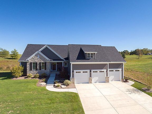 So much to LOVE about this NEW RANCH plan from TIM DOLAN DEVELOPMENT! 2 x 6 construction! Over 3600 Fin. Sq. Ft! 3 BR on main level with 2 additional BR in lower level! 5th BR perfect for in home office/exercise rm/craft rm! Wonderful open plan w/ hardwood floors, custom mantel w/ stone, 12' coffered ceiling, 2 custom 5’ by 9’ built in storage units in Great Rm! Kitchen features granite counters & oversized center island PLUS 10 x 5 walk in pantry! Master Suite features tray ceiling w/crown molding, his & her vanities, soaker tub, walk in tile shower, & 9 x 8 walk in closet! Great main level mudroom area with built in lockers opens to spacious laundry rm! Lower level is finished w/ fabulous rec room & custom built FULL BAR! 14 x 14 screened porch w/ tongue & groove fir floor & custom cedar screens! Backyard offers oversized stone patio with fire pit and manicured landscaping around entire property. OVERSIZED 3 car HEATED garage with room for boat or trailer storage! Cul-de-sac location w/ golf course views! Just minutes to stunning river views, Davenport Country Club & downtown Le Claire! Pleasant Valley Schools!