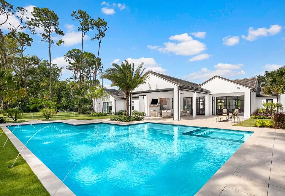 Exquisite new contemporary estate beautifully situated on 1.46 acres is the perfect oasis for tranquility and sophistication. Designed by renowned architect Randall Stofft, this expansive estate offers extraordinary outdoor space; large pool & spa; magnificent, covered loggia and summer kitchen; stunning floor to ceiling windows; gourmet kitchen; spacious primary suite with dual closets; and four car air-conditioned garage. No expense was spared on this custom residence boasting marble, wood and porcelain finishes; custom cabinetry and woodwork; Lutron lighting and Sonos system; hurricane retractable screens for covered loggia, and more. Set in the Village of Golf, Florida's hidden gem...exclusive, gated and home to the Country Club of Florida, one of Florida's premier private clubs " T & T Homes builder