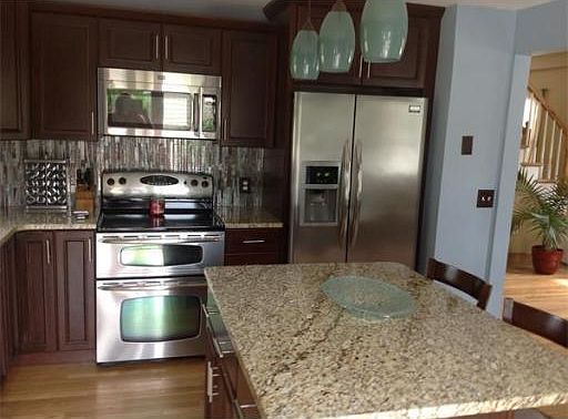 Beautiful three bedroom Colonial with gorgeous remodeled kitchen with custom cabinets, granite counters and stainless steel appliances. This house has an open floor plan with hardwood floors throughout, two full baths and extra living space in the finished basement. Great size yard with a fire pit, beautiful landscaping and completely fenced in. Priced to sell!