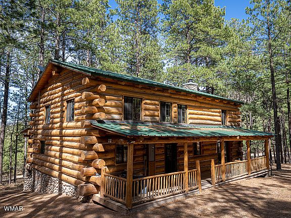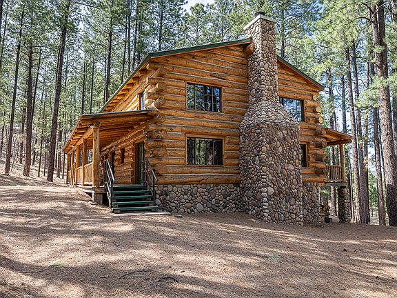 BEAUTIFUL MOUNTAIN CHALET TUCKED IN THE MATURE TIMBER. LARGE LOG CONSTRUCTION IS VERY WELL DONE WITH EXPANSIVE GREATROOM, PINE FLOORS, VAULTED CEILING W/ EXPOSED BEAMS, AND LOVELY ROCK FIREPLACE. LARGE LOFT FOR EXTRA GUESTS OR FAMILY. COVERED FRONT AND BACK DECKS FOR FAMILY BBQ'S, ENTERTAINING OR WILDLIFE VIEWING. DETACHED GARAGE WITH SHOP AREA. BURIED POWER LINES. PRIVATE SETTING WITH VALLEY VIEWS THROUGH THE TREES AND QUICK ACCESS INTO N. FOREST. PROPERTY HAS BEEN THINNNED TO FOREST SERVICE SPECS.