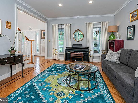 Make your way down a cul de sac lane beneath a canopy of outstretched branches to this stone-accented home with a wide front porch. Situated just two turns away from the heart of Hopewell Borough, the fenced yard, studded with even more majestic trees, imparts a town 'n country feel. Sit out on the deck in the shade of the awning and unwind to the rustle of leaves and chirping of birds. The interior was painted top-to-bottom, all the way down to the finished walk-out basement with spaces for play, exercise and overnight guests, who will enjoy having their own full bath. The gathering areas of the main level have an easy, circular flow that encourages use of every space, including formal rooms with inlaid wood floors, the vaulted family room with a stone fireplace and the eat-in kitchen at the center of it all. An office with a whole wall of built-ins keeps all four upper bedrooms dedicated to rest and relaxation. The main suite is especially spacious with a high tray ceiling and a big sitting area situated between two walk-in closets. A skylight spills sunshine down on the private bath, also with an extraordinarily tall ceiling. Fans offer comfortable breezes and let you sleep with the windows open when the weather is fair, another perk of the peaceful location. No matter the season, this head-turning home and its stunning setting always send hearts racing!