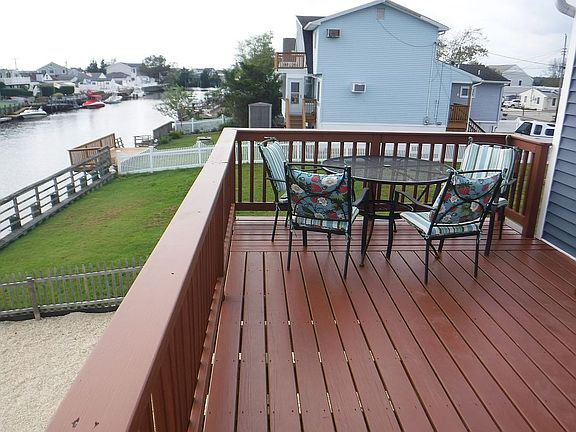 Move right into this pristine waterfront property that is above the BFE. Flood insurance is under 450.00 Enter the home through a covered Foyer. Wide staircase that leads up to the living space. Seller thought it through that if you ever wanted to add a garage underneath you can and then there is a way to access the garage from the interior of the home . Seller occupies the home as a year round residence . Sit out under the home and enjoy the breezes and the shade. The home is lovely and represents pride of ownership through out. The original home was damaged in Super Storm Sandy. The home was gutted to the studs, all new plywood, new roof, new sheathing ,new electric, new plumbing, new insulation, all new siding . The pilings under the home are all new, windows , doors, flooring. HVAC all new also . Kitchen is a gourmet kitchen, with a center island, full Stainless Steel appliance package.