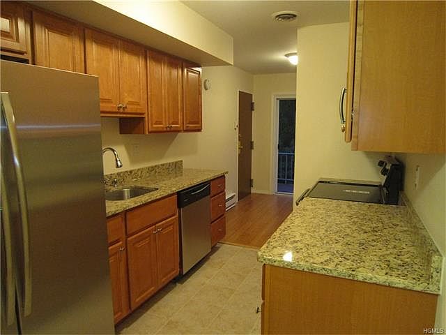 Move right into this just beautifully renovated 2 bedroom condo on upper level (2nd floor - no one above you!). Features include a pretty brand new kitchen with wooden cabinets, granite counters, stainless steel appliances, and a ceramic tile floor, a dining area and spacious living room with wood floors and sliders to a deck, master bedroom with walk in closet, small 2nd bedroom and an updated full bath. Lots of convenient parking near front door. Rent includes water - tenant pays electric (heat, cooking, etc).