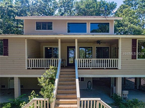 Private coastal cottage with expansive marsh/water views and flat, useable acreage. Ancient live oaks, palms and a fishing pond provide the low country setting. This home has been updated with a modern cook's kitchen, oversized first floor master suite with updated master bath and sitting area. Second floor suite bedroom and loft. Heart pine floors in living areas, new carpet in bedrooms. Oversized garage with workroom and huge storage area. Geothermal heating and cooling system, deep well, partially fenced yard area with no HOA fees.