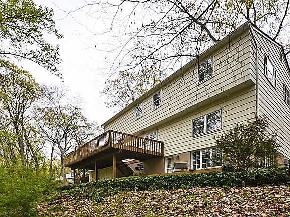 You have just found your own private retreat! This immaculate home is nestled on a wooded .77 acre lot and must be seen to appreciate the serene beauty it offers. One of the first things you will notice is the beautiful red, brick walkway leading through the bright green of spring to the front door. This pristine home boasts 4 bedrooms, 2.5 baths, eat-in kitchen, formal dining room, spacious and bring living room and a family room with a fireplace, access to the deck and tranquil views from all windows. There is a bonus! The basement was finished in 2006 with a bedroom, fully equipped kitchen w/ dishwasher and a bathroom with shower and would make a terrific in-law/ nanny suite. Back upstairs, the family room will definitely be a favorite room. It has a brick fireplace, sliders to the large deck, carpeting, skylight and more windows to let in the tree filtered light and more beautiful views. All of the bedrooms are neutrally decorated and have hardwood floors. The kitchen is bright with tiled floor, plenty of cabinets and room for a table. The 2 baths were updated in 2010. The main bedroom is 25 x 21 giving you plenty of room. There is a patio out back as well as the deck. The rear yard is low maintenance with ivy and woods. The front is nicely landscaped. When you come by to tour the home don't forget to imagine this lovely property in all 4 seasons-and in all colors.