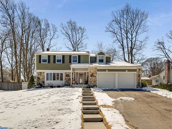 A charming porch swing welcomes you to this spacious Point of Woods colonial with a relaxed ambience and spacious, open rooms. Move over beige & grays ? this home offers a contemporary paint palette giving it an instant warm feel with pizzazz and a sense of character. Hardwoods greet you in the large foyer, and continue through the semi-formal living room which is perfect for entertaining and unwinding. A large front picture window in the living room provides for natural light that filters into the foyer. You won't believe the size of this eat-in kitchen which was beautifully updated with gorgeous granite-look counters, maple cabinetry, ceramic tile flooring and backsplash with plentiful storage and prep space. The cook is able to chop, saute and socialize at the same time, thanks to granite counter seating at the peninsula. A fun glass block window by the dining area allows additional light and privacy. Open to the kitchen is a cozy family room which features a toasty fireplace, a terrific wet bar, and a slider to the back deck. Access to the 2 car garage, a wonderful tiled powder room and a convenient 1st floor laundry room rounds out this level. Upstairs, the master suite comes with hardwood floors, an abundance of storage with its 3 separate closets and a gorgeous master bath. Three additional bedrooms, 2 of which have hardwood flooring, all share a nicely updated hall bath. A finished basement with dark wood-look laminate flooring is perfect to use as a media room or playroom and comes with two separate rooms currently used as an office and additional storage. A fully fenced back yard is ready for spring and outdoor entertaining with a large deck and a separate patio area. A brand new shed offers even more storage! This home is tucked away in an established Cherry Hill East neighborhood yet is still close to all major commuter routes and Cherry Hill Twp amenities, including top rated schools, fine restaurants and great shopping!