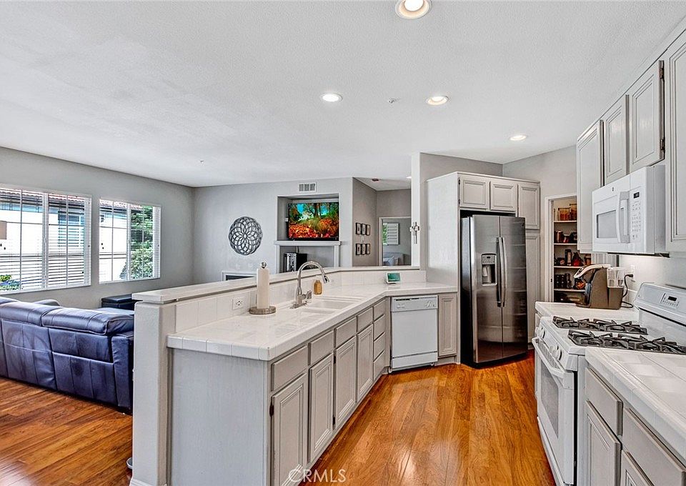 Discover the epitome of comfortable, convenient living at 9 Darlington, nestled in the highly desirable Northwood Pointe community in Irvine. This upper level, end-unit gem, is located in a gated community. Offering the ultimate in privacy and tranquility with no neighbors above or below. A fabulous open floor plan welcomes you, featuring 2 bedrooms, 2 bathrooms and 1,291 SqFt of living space. Relax in the spacious living room with a cozy fireplace, dining area, and a well-appointed kitchen - all thoughtfully arranged on a single floor for effortless living. The open kitchen includes a convenient walk-in food pantry and a separate laundry room for added functionality. Each bedroom is ideally located for additional privacy. The primary has custom closets for added organization and storage. Enjoy the indoor-outdoor living with access to a generously-sized balcony, perfect for lounging. For additional ease, enter the home through the direct access, attached garage. The garage has custom overhead racks for even more storage. This home is located near many amenities of the community, featuring pools, spas, tennis courts, various athletic fields, BBQ areas, and picnic spots. Benefit from the great shopping, dining, schools, and freeways that are all located within minutes of this home.