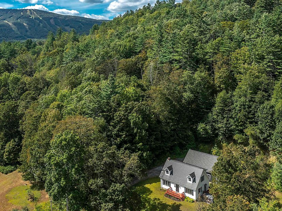 Set on a knoll overlooking the elementary school and view beyond, this three bedroom, two bath contemporary cape is within 5 min. of Okemo and features a sleek, renovated kitchen with quartz counters and upgraded appliances. A large, light-filled living/dining area perfect for entertaining and a cozy tv room (which could function as a first floor bedroom) and full bath with updated vanity complete the first floor. The dormered second floor, features a large primary bedroom with a walk-in closet. Two additional bedrooms, one with built-ins and a full updated bath complete the second story. The basement offers additional space with a tv/game room and office/study. Ready for a project? Plumbing has been roughed-in for a third bathroom. The laundry room has a driveway entrance providing a convenient spot to drop your ski gear. The oversized, two car detached garage is equipped with a pellet stove, 10’ ceilings, large workspace and a second floor ready to be finished for an extra game room or office. The deck off the kitchen is perfect for grilling and the firepit out back is a great place to stargaze. Easy walking distance to village shops and restaurants.