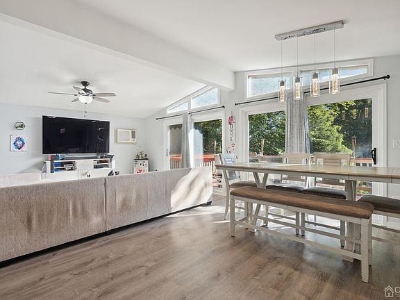 Welcome to your dream mountain retreat! This immaculate home is nestled amidst the pristine beauty of desirable Hunterdon County. This 3 bedroom wood chalet offers the perfect blend of rustic charm and modern elegance. This home has an open floor plan, updated with wood-look vinyl flooring throughout, ceiling fans, light and bright with two sets of sliders the length of the living room. Step out onto the sliders and you'll find yourself on an expansive deck that offers awe-inspiring vistas of the picturesque Spruce Run Reservoir. Whether you're relishing the changing seasons and vibrant fall foliage or seeking shelter on rainy days beneath the ample awning, this property truly stands out as a gem! Plus, take advantage of the community amenities, which include playgrounds and an inground pool. The partially finished basement not only houses a laundry facility but is also multifunctional, serving as a storage space, a game room, and an exercise area. Heat your home with the pellet stove this winter! This home is ideally situated with easy access to Routes 78 and 22. It's renowned for its outdoor adventures, including exploring the serene Solitude Village Dam & Waterfalls. Moreover, nearby downtown High Bridge beckons with its array of fine dining establishments, shops, a brewery, and charming coffeehouses. Open floor plan so room sizes are approximate. Elizabethtown Gas installing natural gas lines (see docs) in the street. Deer Run has been completed and remaining lines in development are still being installed.
