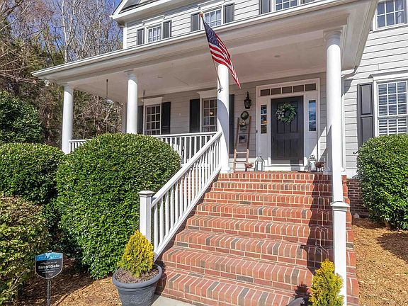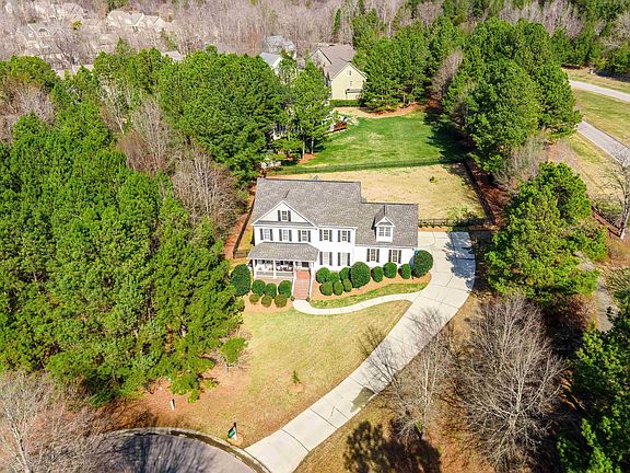 Stately home situated on quiet cul-de-sac in the Treyburn Golf Course Community. Large .65 acre lot is surrounded by mature landscaping & trees. Covered front porch, upgraded custom trim package, entry foyer, formal dining, & breakfast room. Open kitchen w/SS appliances, tile backsplash, granite countertops, glass cabinets, & built-in desk. 2 story ceilings in living room w/built-in shelving, & gas FP accent wall. 1st floor owner's suite w/dual sink vanity, soaking tub, glass shower enclosure, huge WI closet, & water closet. Wheelchair accessible on main floor. Study on main level w/direct access to backyard. 2nd floor has an office w/shelving, secondary bedrooms, 2 full baths, & bonus. Flat, fenced backyard w/blue stone patio is perfect for entertaining. **Privacy curtains for back patio & new plantings for backyard are currently underway. Side load 2 car garage. Neighborhood walking trails & playground are just a block away. Whole house Generac generator. Treyburn amenities include clubhouse, tennis courts, fine dining, events spaces & more! The championship golf course is part of the McConnell Golf portfolio.