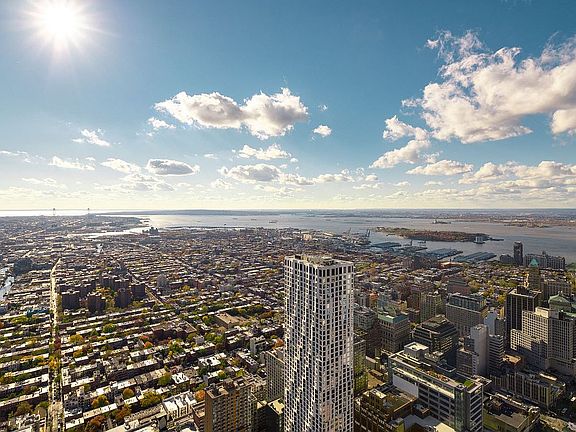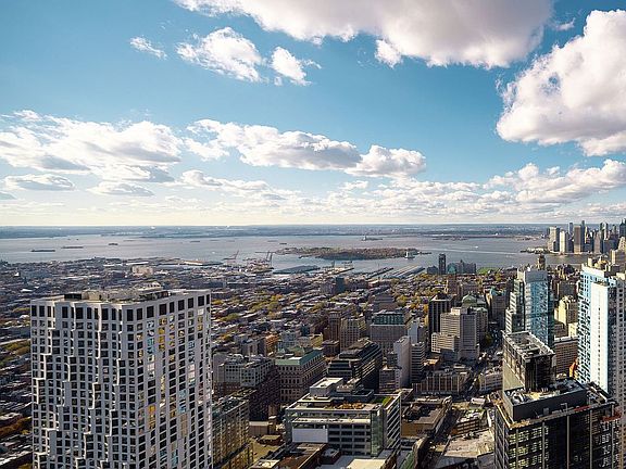 Residence 70B at The Brooklyn Tower is a spectacular one-bedroom, one-bathroom home featuring interiors by AD100 Gachot Studios and unprecedented vistas over the Lower Manhattan skyline, New York Harbor, and East River. Radically imagined by award-winning SHoP Architects, The Brooklyn Tower is Brooklyn's first supertall, rising over 1,000 feet into the skyline.