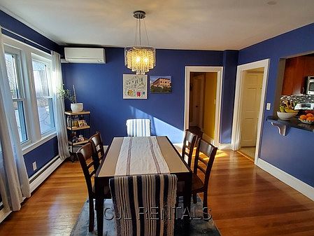 MUST SEE TO APPRECIATE Very nice, modern and renovated 2+ bedroom CONDO (1st floor of 2 family) located in desirable Waltham "Island" section on Newton line. Very quiet, residential neighborhood located off upper Moody Street, near Newton line. Close to all that Moody Street has to offer (restaurants, shops, movie theater, etc) along with Purple Commuter Rail(both North and South Station trains),Green Line (Riverside & Auburndale stops) local and Express Bus to Boston. Location is near the Charles River, where you can launch a canoe or kayak! Very easy access to major commuting roads (MA Pike, RT 92/128, RT 30, RT 20, etc). This unit has a great "personality" and lots of character with its' updated features and bright paint colors! Former OWNERS UNIT...owner is leaving custom shade , curtain rods and WASHER & DRYER! Grill and outdoor patio furniture to be shared with 2nd floor owner. Unit is 1184 square feet featuring high ceilings, ceiling fans, newer cabinets, closet shelving, hardwood flooring, newer windows, ceramic tile bath, split ductless heating system (gas) controlled by NEST. Beautiful kitchen with stainless steel appliances (fridge, gas stove, dishwasher, disposal), tile floors, granite counters and plenty of cabinets. Formal dining room with built in hutch....good sized living room....smaller sun room off living/dining room makes a great office, hobby room, reading room, etc. Spacious Master bedroom, will accommodate a king size bed, with useful closet shelving, ceiling fan and high ceilings. Second bedroom also has closet shelving, ceiling fan and high ceilings. GORGEOUS bathroom...ceramic tile, must be seen to appreciate! Washer & dryer will be included! Basement storage area...2 car off street parking. Small pets (under 25 pounds) are negotiable.... NO SMOKING....Available MAY 1. 1/2 months broker fee...must have excellent credit and references.291.5194