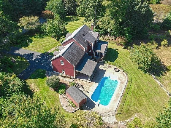 This home offers the best of both worlds, nestled deep within a cul-de-sac neighborhood, set on a large lot with sweeping views! Heated 4-season sunroom overlooks the gorgeous back yard and town conservation. Enjoy neighborhood access to 6 miles of trails around Lake Whitehall for hiking, kayaking, fishing, or snowshoeing! Connects to 2600-acre Upton State Forest for miles of additional trails. Entertain on the luxurious covered patio, or splash in the heated salt water pool! There's plenty of room for fun and games in the expansive side yard. The open-concept kitchen boasts several updates including newer appliances, flooring, and more. Primary bedroom was expanded and remodeled to include a custom walk-in closet and an en-suite with luxurious shower and radiant heated flooring. Redesigned 2nd floor features 4 bedrooms plus an office! Finished basement was remodeled to include a home gym, media room and flex space: a dry bar, playroom, or craft center. Top ranked schools, don't delay!