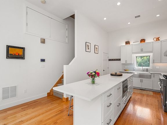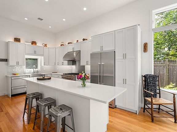Nestled on a charming, one-way side street, this contemporary townhouse is thoughtfully designed to maximize natural light. The stunning main level boasts a beautifully crafted chef's kitchen with an impressive 11-foot island, seamlessly flowing into a spacious living and dining area with soaring 12-foot ceilings and a glass door opening to the side yard. The upper level features a serene primary suite with two closets and a luxurious marble bathroom with double sinks, accompanied by two additional bedrooms and a full bathroom. The lower level, with large south-facing windows, offers a versatile suite with a family room, wet bar, bedroom, and full bath—perfect for a home office, au pair, or in-law suite. Large, private roof deck is well suited for entertaining and relaxation. Ideally located for easy access to Harvard and Porter Squares, as well as Huron Village, this home combines elegance with convenience.