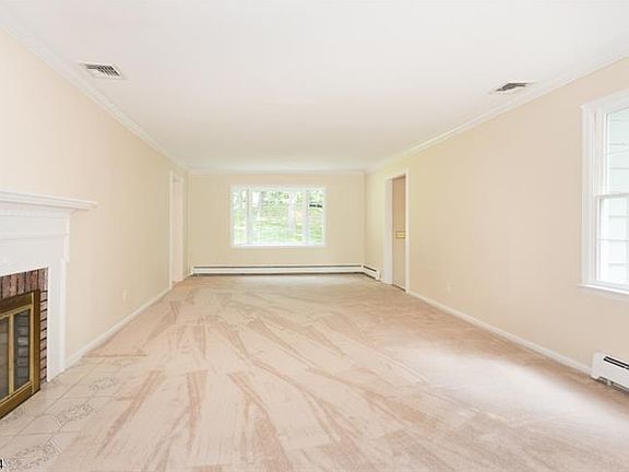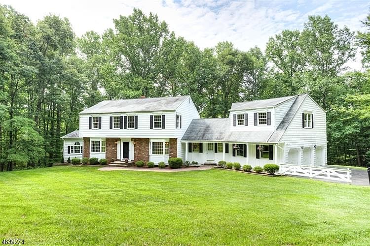 Private wooded 2 acre Dogwood Estates large 4 bedroom home situated on cul-de-sac with 3 car garage. Traditional center hall colonial has an attached bonus suite wing. Large center hall colonial has an attached bonus suite wing. The bonus suite features a rec room, office den, storage closet and full bath. Neutral colors, immaculate, newly painted and all new carpeting. 1st fl library has built-in bookshelves with 2nd office in bonus suite. Spacious kitchen is naturally lighted and features skylights. French doors open from the family and living room to an expansive deck overlooking the private rear yard with space for a pool and play area. Elegant double-sided wood-burning fireplace in the large formal bay-windowed living room and family room. Home protection plan included.