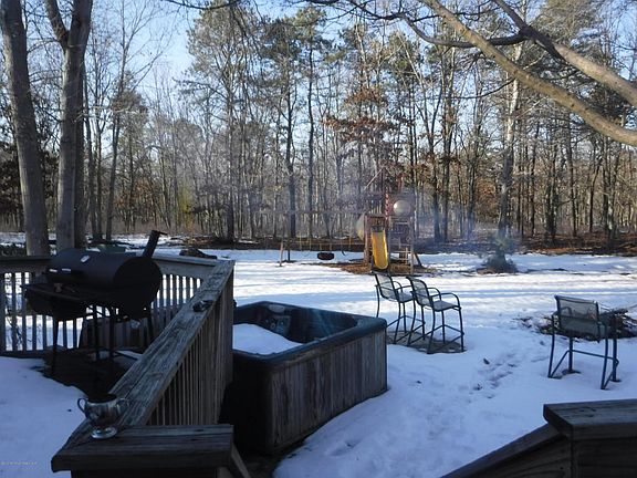 Inviting colonial on a 4.68 acre lot backing to miles of park land. Close enough to civilization but having complete privacy to feel away from it all. Oversize rocking chair front porch, upgrade engineered wood floor , decorative molding and stone, and recess lights throughout. Spacious kitchen has center island, more than ample cabinet space and opens to dining as well as leads out to the deck with outside. Master bedroom with private bath, custom walk in shower , walk in closet. Pellet wood stove in the formal living room , separate family room and formal dining room. Wrap around deck with built in BBQ perfect for an outside kitchen, plus huge custom stamp concrete patio, great for sitting around the fire pit.