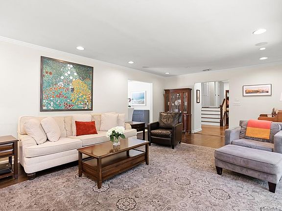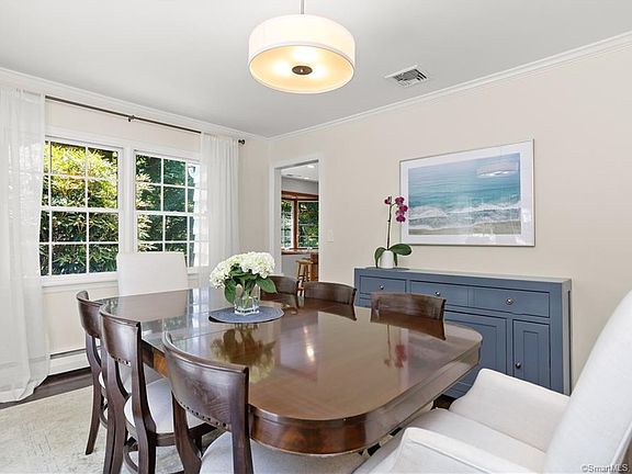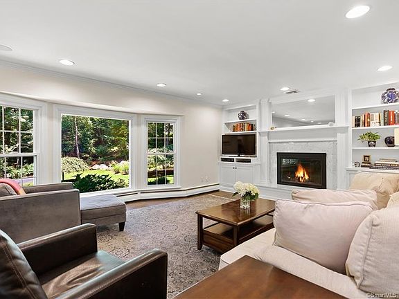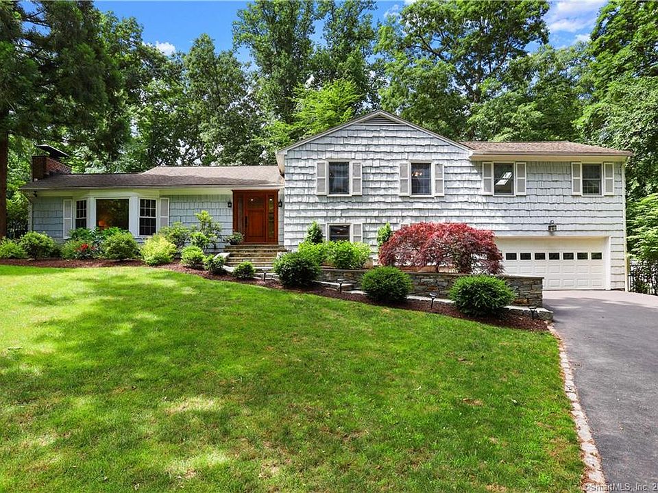 Light filled and wonderful space in this privately set home offering an easy lifestyle with lovely updates throughout. Spacious Living Room with large Bayed Wall and marble Fireplace, Dining Room with French Doors to Patio both featuring Hardwood Floors. Lovely, updated Eat-In Kitchen with Granite,, Stainless and Breakfast Bar has tons of light from the Bayed wall and door to Deck. Main Bedroom level is just a few steps away and has an exquisite Master Suite with updated Master Bath including Steam Shower custom double vanity area and jetted tub; separate Dressing Area with 2 Walk-In Closets and incredible Bedroom with "tray" ceiling, 2 skyights and sliders to Private Deck. Two additional well-proportioned Bedrooms and Full Hall Bath plus "crafts" closet complete this floor. On the lower level you'll find a Family Room, Ensuite Bedroom with Slider private Patio and Office, plus entry to the 2 Car Garage. Additional 500+ sq ft bonus finished space in lowest level with Playroom, Laundry, Storage & Mechanicals. Decks and walkways all lead to the tranquil stone Patio and fully fenced yard with mature plantings, Playset -offering hours of outdoor fun! Extra bonus - great Treehouse offers a private escape. Private Association is optional. Easy living in this wonderful home in desirable North Stamford Association!