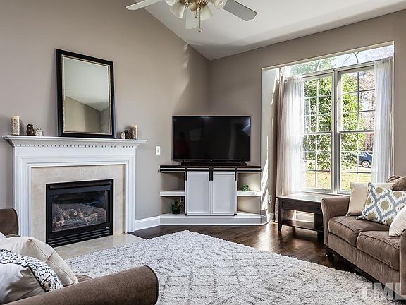 Sweet cul-de-sac home on level lot in popular N Durham nhd near the Eno! Vaulted LR/DR w/refin HARDWOOD FLRS, gas log FP & built-in TV cabinet. Kitchen w/TILE FLOORS, GRANITE COUNTERS, 42" cabs, bay window -- eat your breakfast & view the outdoors. MAIN FLOOR MASTER. Tile master bath w/jetted tub, double vanity. LOFT for office, yoga, reading. BR w/ENSUITE bath. 2018 ROOF! Private rear FENCED YARD - room for pets & play. Enjoy a dip in the COMMUNITY POOL. Mins to shops, park & downtown Durham!