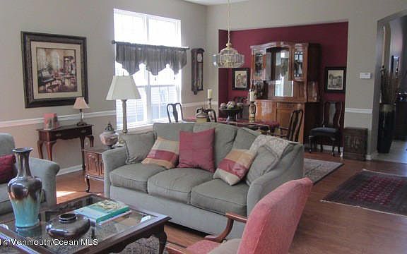 WOW!!! This BEAUTIFUL, Brick-Front, Barnegat home is located in the desirable, upscale, Adult-Community, Horizons of Barnegat. With it's backyard facing the woods, this peaceful home features a 2-story foyer, a large-updated kitchen, and an open-concept combined living room/dining room with beautiful hardwood floors and vaulted ceilings. It has 3 baths and 3 bedrooms, including a large, 1st floor Master Bedroom Suite with 2 Closets and a Master Bath featuring a jetted tub, double sink and a separate shower. A back patio facing the woods, 2-Car garage and huge 10x29, easy-walk in, 2nd-floor storage room completes this GORGEOUS Home. Additionally, it is conveniently located for easy access to the community's clubhouse, exercise room & pool.