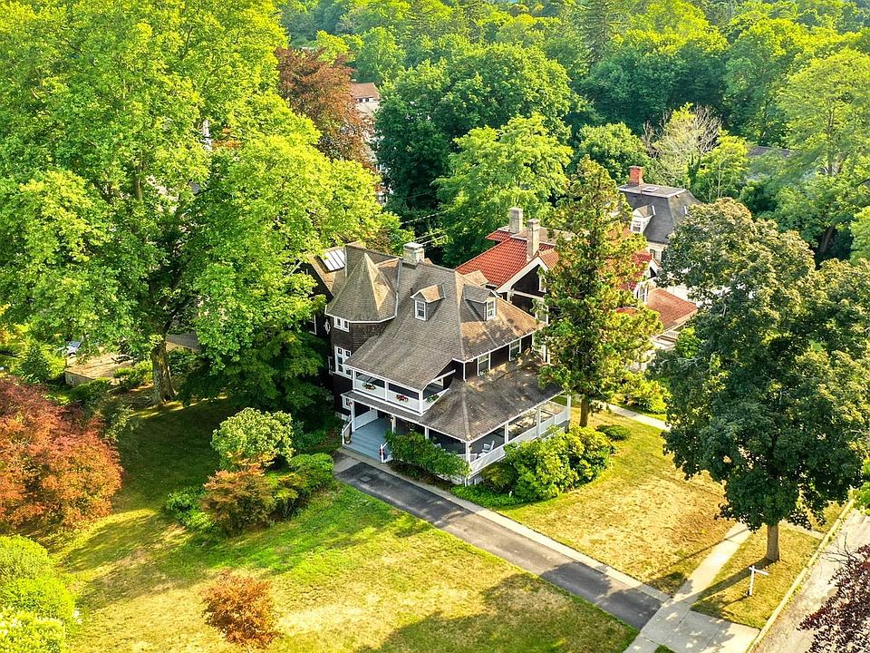 Located in Poughkeepsie's National Historic District, this spectacular turn-of-the-century Victorian home offers generous living space with many unique details both inside and out. The front of the home features an extensive wrap around porch with an abundance of cool breeze flowing through. An oversized wood and glass front door opens into a large foyer which leads to a meticulously crafted double-staircase with stained glass windows. There is a spacious living room, dining room, and a cozy well-lit library. The entire first floor is covered with beautiful hardwood floors that flow throughout. The house has an abundance of natural-light with it's large triple-track windows. The kitchen has been updated and features granite countertops, under-the-cabinet lighting, and a back porch which overlooks two giant specimen trees in the backyard. There is also a laundry room which is adjacent. The second floor features three sun-filled bedrooms including a spacious master bedroom with an attached office. Elegant French doors lead to an outdoor sleeping porch with a pleasant view of the front yard and garden. There are two full bathrooms on the second floor.A second flight of stairs lead to a walk-up rainy-day attic with plenty of space to accommodate an art studio, craft room, or playroom. The home is situated in a convenient location just minutes from local businesses, the Poughkeepsie riverfront, Metro-North, local hospitals, colleges, and universities. includes the adjacent lot.