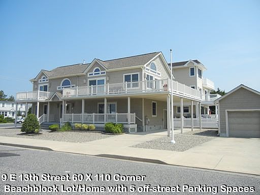 Located on a 60x110 corner lot of arguably one of the nicest north end beach blocks in Avalon, this spacious and impeccably cared for home is the ideal home and location for your family’s summer vacations. Offering unobstructed (no utility wires on 13th!) wide open views of the ocean from the oversized ocean side wrap around deck and master bedroom deck, enjoy your morning cup of coffee as you sit at the dining room table enjoying the ocean view and breezes. The chef in your family is sure to appreciate being the center of attention working at the spacious natural cherry wood center island enhanced with custom backsplash and granite countertops. The five burner stove top and wall oven make cooking a breeze. As you enter the front door you immediately feel the generous space of the home. You are greeted by a towering foyer that continues as you make your way to the second floor where the vaulted ceilings and many windows and sliders provide a wide open airy feeling. Easy to care for ceramic flooring runs thru the entire second floor great room while cozy, comfortable carpeting covers the bedroom and family room floors. Your guests will appreciate the private first floor suite along with two other bedrooms, family room with wet bar and hall bath for their kids to enjoy. Easy access from a day at the beach is found through the laundry room convenient to the outside shower. Well thought out and planned for easy family use. The home is conveniently designed with a ground level elevator located in the covered car port with stops on both the first and second levels. The detached one car garage has additional storage on the back side of the garage so you can actually park your car if you choose IN the garage!