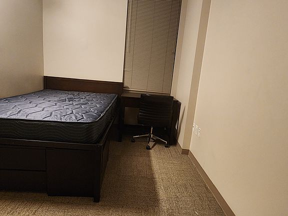 Enjoy the comfort of a private bedroom in a fully-furnished unit on the 9th floor of a modern building. The room features a double bed, individual closet, desk, and lockable door for your privacy. The flooring is carpeted for a cozy atmosphere, while the common areas have sleek laminate flooring. This unit is designed for convenience and style, with roommate matching and individual leases for added flexibility. The apartment is furnished with everything you need, including an upholstered couch, entertainment center, coffee table, dining set, and full-size bed with mattress. Kitchen & Laundry: The kitchen is fully equipped with full-size appliances, including a refrigerator, dishwasher, microwave, and stove with a ceramic cooktop. You'll also enjoy the convenience of an in-unit washer and dryer. Utilities: A fixed monthly fee covers high-speed internet (both wireless and ethernet), extended cable TV, water, and in-suite thermostat control for heating and electricity. Bathrooms: You'll share a semi-private bathroom featuring a separate vanity area for added convenience. Building Amenities: The building offers a wide range of amenities, including: Fitness center Study lounges Game and media rooms A green roof with a grill Ground-floor retail and eateries Parking garage Pet-Friendly: Pets are welcome, making this the perfect place for you and your furry friend. Experience a perfect blend of comfort, convenience, and community in this outstanding residence!