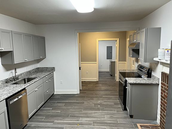 The House is 2 units ( upstairs and downstairs unit ) .Separate elec and HVAC for each unit.Bathrooms and kitchen redone a year ago .3 bdrms ,den / living rm, large kitchen and laundry rm. New appliances one year ago. Yard / grass cutting included in rent . Offstreet parking