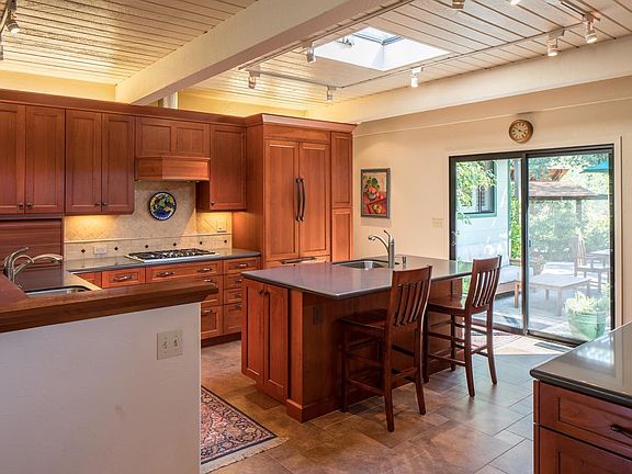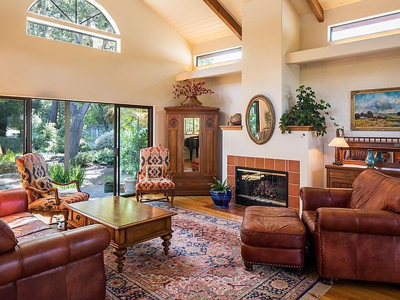 "A walk in your very own Park" Islands of greenery and meandering paths are yours. Enter into your open beam ceiling living room with fireplace and clerestory window. Look through the house to the charming back yard with covered barbecue area. Enjoy the warm atmosphere of the home home with its open kitchen and its formal dining area complete with its own library. Three bedrooms and three baths, two with their own baths, plus a cozy den and a hallway office complete with built-ins. The kitchen has cherry cabinets, the floors are hardwood and there is a double car garage. Central forced air heat and central air conditioning will provide comfort for all seasons. It's a rare offering and just the perfect "move-in" situation. Hiking trails access to Garland Park is right across the street. Floor plan done by professional. Buyers to verify on their own.