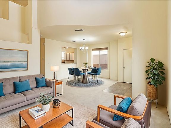 Lovely corner townhome in highly sought-after neighborhood of Rancho Viejo! The property features a light and bright open floor plan, spacious great room, high ceilings and granite kitchen countertops. Upstairs are two balconies with views of mountains, sunrise and sunset. Dining area opens to the great room and the front of the home has a gated courtyard that faces to the open space to one of the neighborhoods welcoming parks. This beautiful home features 2 bedrooms, 2 bathrooms, a downstairs half bath for convenience and an attached 2 car garage. The main bedroom has private deck with mountain views, walk in closet and updated bathroom with a rainfall shower head. In addition to the 2 bedrooms there is an open loft/office area that leads to the second deck with mountain sunrise views. Additional upgrades include newer washer/dryer, reverse osmosis system in the kitchen, water heater replaced in 2022, drip irrigation in the front courtyard. Quiet and serene location with access to the miles of paved trails the community has to offer. All while being a short distance to shopping centers, restaurants and 599/I-25. Come see this move in ready Rancho Viejo gem today!