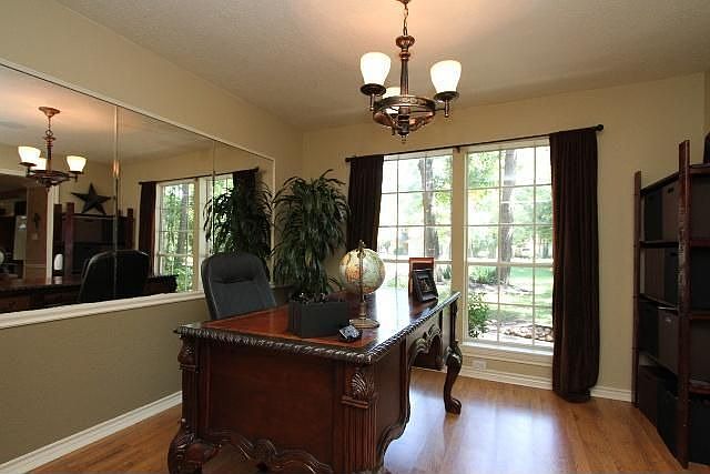 You're home! Beautiful home w/great upgrades on private wooded lot. EZ access to Market Street, Mall, Parks & I-45. Home recently remodeled including master bath & Kitchen w/new appliances, granite countertops, updated cabinets, new hardware, etc. Living room w/brick fireplace & side custom built-ins. $12000+ AV equipment included - Whole House Audio Keypad System, High-End Surround Sound System w/ 100 inch Drop-Down Screen. 4 spacious bedrooms, deck w/patio & play set in large backyard.