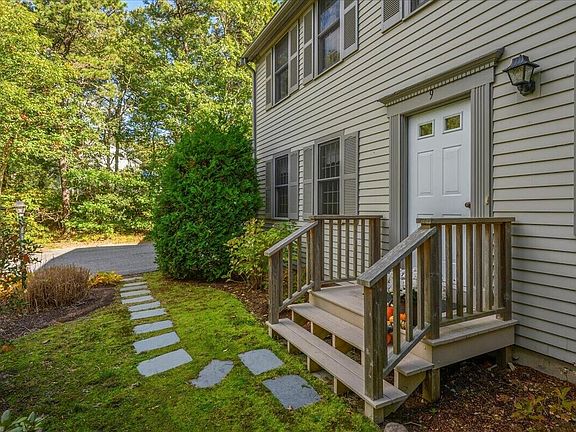 Near Pleasant Bay! This 3/2 salt box is nestled in a private setting on a quiet cul de sac abutting conservation land! Offers an open floor plan with cathedral ceilings, an interior balcony, and a first floor bedroom! Hardwood floors in living room, dining area, and 1st floor bedroom. Bath on 1st floor has a walk-in shower! Features a den off the back with a bay window, cozy window seat, built-ins, and slider to the deck. Enjoy gas hot water heat, a gas fireplace great if the power goes out!, one car garage, and a very private and sunny deck! Plus a full, unfinished basement, central vac, and alarm. Please see custom video with drone footage that shows how close you are to Round Cove on Pleasant Bay! Whether your fun is to launch a boat, kayak, or paddle board, the landing is about a half mile away! Also right there at Pleasant Bay is the Wequassett Inn, Jacknife Beach, and Eastward Ho Golf Club! There are also hiking trails in the conservation land nearby! Convenient to the shopping center in East Harwich as well as Rt 6. What an opportunity! Buyers and agents to confirm all details.
