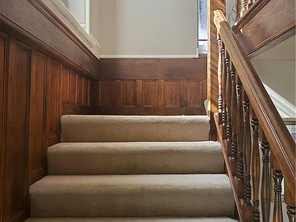 this 3 bedroom 2 bath home has had new boiler, new hot water tank, new gas lines new roof over family room and some new fresh painted rooms. Hardwood floors under carpet. Covered front porch for enjoying sitting and watching the world go by. Entrance foyer, living room, dinning room, kitchen, family room bath and laundry room on first floor. Upstairs are three bedrooms each with a large closet. Full basement with partial concrete floor. Two car detached garage.
