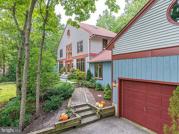 This unique 5 Bedroom and 2.5 Bath contemporary style home is located in the Alluvium section of Voorhees. The home boasts hardwood flooring, high-end windows and doors, a unique 2-story entry way, large rooms sizes throughout, recessed lighting, step down to the living room with cathedral ceilings, a neutral decor throughout, a wood burning stove, French doors to the back deck, large windows that bring in a ton of light, a large 5th bedroom that is separated from the house that could make a great in-law suite, a huge room on the 3rd floor (the one with the big circle window) could be a great play room/ studio/ bedroom/ etc. and top it all off with a beautiful master suite. The exterior of this home offers a large fenced-in lot, a paved driveway that leads to a 2-car garage, one deck off of the family room and one off of the kitchen, professional landscaping that goes on forever, and all on a private cul-de-sac lot. Don't miss your opportunity to see this wonderful home.