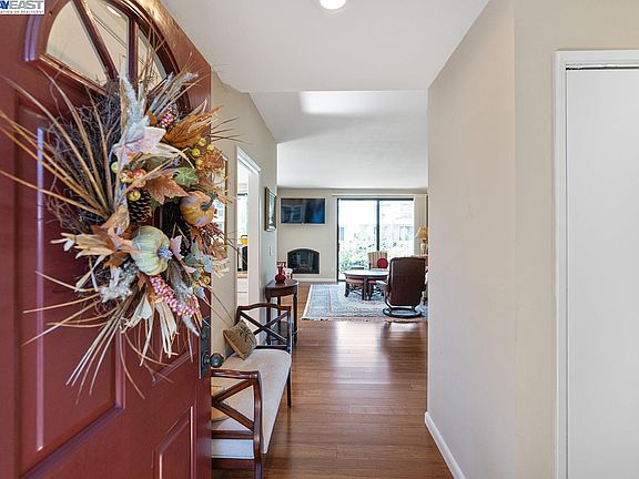 Every surface of this remodeled GROUND FLOOR waterfront Marina Village condo has been retouched. Updates are in abundance! This 2BD/2BA condo is overflowing w/natural light. The kitchen glistens w/bright cabinetry & boasts new SS appliances, quartz counters, & pendant lights over the bar-like counter with lower glass-faced built-ins. This remarkable home has 9ft ceilings, HWFs, & a gas fireplace. Beautiful windows & 8ft sliders bring the outside in. The outdoor patio opens up to the dining room, living room, & both bedrooms. The primary ensuite features a dual sink vanity & walk-in closet. Both bathrooms have radiant heat & the single-car garage has a newer door & built-ins providing ample storage. Also included in this one-of-a-kind property is in-unit laundry, an additional parking spot, & HOA amenities such as a pool/spa! Paths, parks, yacht clubs, shopping center within walking distance.