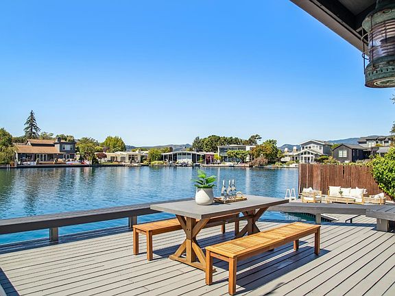 Perfectly sited on the best part of the lagoon with southwestern exposure, this inviting home evokes an immediate feeling of serenity and relaxation. The open floor plan and walls of windows invite the wonderful outdoors in. Paddle board, kayak, entertain or simply relax on your spacious outdoor deck as you gaze at the azure waters and the beauty of Mt. Tam. The desirable floor plan includes a primary suite as well as two additional bedrooms and a full bathroom. Open and airy living/dining room with access to the entertainment deck. Hardwood floors throughout the main living spaces. Light and bright kitchen with new quartz countertops. A peaceful private garden leads you to the spacious two-car garage. Easy living includes flat walks or rides to Belvedere Park and into the town of Tiburon, with vibrant restaurants, shops and ferries to SF and Angel Island. Well loved by the same family for many decades, this desirable property is ready for the next chapter.